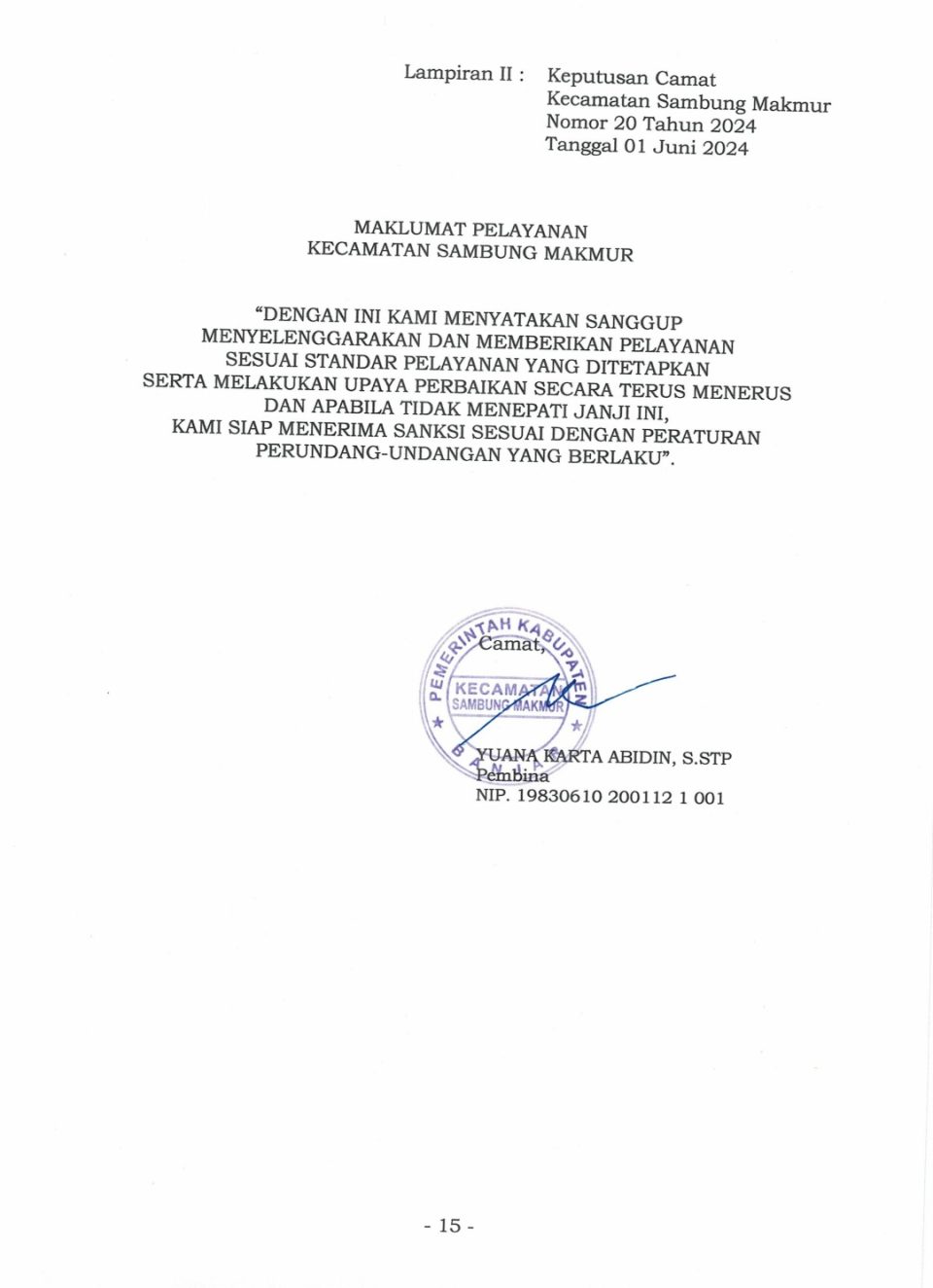 BeritaMaklumat Pelayanan Kecamatan Sambung Makmur November 17, 2025November 17, 2025037 Maklumat Pelayanan Kecamatan Sambung Makmur