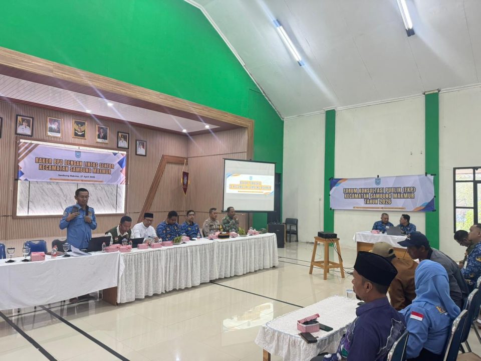 Senin, 27 April 2026, bertempat di Aula Kecamatan Sambung Makmur, telah dilaksanakan Rapat Koordinasi Badan Permusyawaratan Desa (BPD) dengan lintas sektor se-Kecamatan Sambung Makmur. Kegiatan ini bertujuan untuk memperkuat sinergi dan koordinasi antara BPD dengan berbagai unsur pemerintahan serta Forkopimcam dalam mendukung pembangunan dan pelayanan masyarakat di tingkat desa.